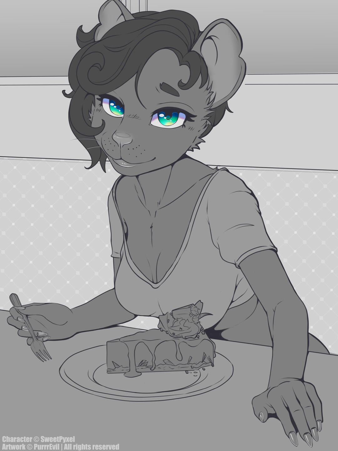 The client has the right to make prints for personal use (con badges, posters, etc) but not for resale or commercial use. They do not have the right to sell the work under any circumstances, unless previously agreed upon when the order was made.The client does not have the right to make or sell NFTs (Or any form of cryptocurrency) using my work.
